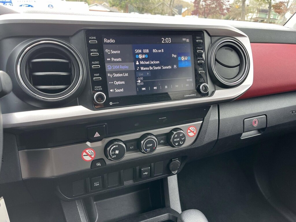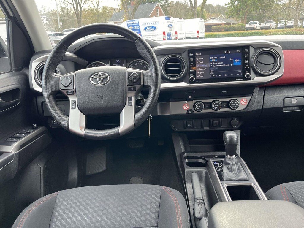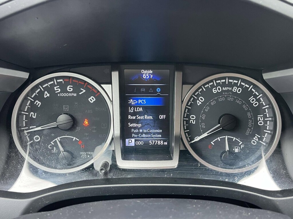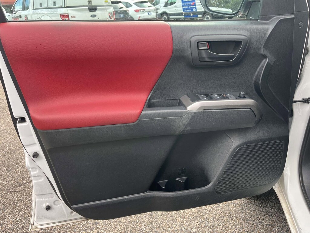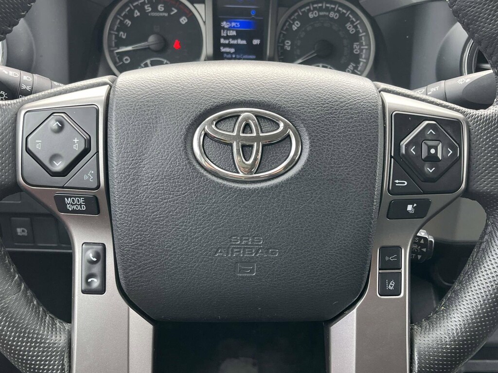 This 2023 Toyota Tacoma in Ice is equipped with. SR5 RWD 6-Speed Automatic 2.7L SMPI DOHC ABS brakes, Active Cruise Control, Air Conditioning, Black Headlamp Bezel, Charcoal Grille w/Chrome Surround, Chrome Rear Bumper, Daytime Running Lamps, Electronic Stability Control, Front Door Smart Key System w/Push Button Start, Front Fog & Driving Lamp, Heated door mirrors, Illuminated entry, Low tire pressure warning, Remote keyless entry, SR5 Package, Traction control.