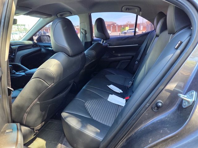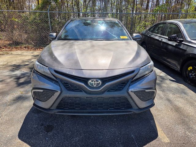 Gray 2024 Toyota Camry SE FWD 8-Speed Automatic 2.5L I4 DOHC 16V This Camry is equipped with. Black Artificial Leather, 18" x 8J Alloy Wheels, 4-Wheel Disc Brakes, 6 Speakers, ABS brakes, Air Conditioning, Alloy wheels, AM/FM radio: SiriusXM, Apple CarPlay/Android Auto, Auto High-beam Headlights, Automatic temperature control, Brake assist, Bumpers: body-color, Delay-off headlights, Driver door bin, Driver vanity mirror, Dual front impact airbags, Dual front side impact airbags, Electronic Stability Control, Emergency communication system: Safety Connect (1-year trial), Exterior Parking Camera Rear, Four wheel independent suspension, Front anti-roll bar, Front Bucket Seats, Front Center Armrest, Front dual zone A/C, Front reading lights, Fully automatic headlights, Heated door mirrors, Illuminated entry, Knee airbag, Leather steering wheel, Low tire pressure warning, Occupant sensing airbag, Outside temperature display, Overhead airbag, Overhead console, Panic alarm, Passenger door bin, Passenger vanity mirror, Power door mirrors, Power driver seat, Power steering, Power windows, Radio data system, Radio: Audio, Rear anti-roll bar, Rear seat center armrest, Rear side impact airbag, Rear window defroster, Remote keyless entry, Security system, Speed control, Speed-sensing steering, Split folding rear seat, Spoiler, Sport SofTex Seat Trim w/Fabric Inserts, Steering wheel mounted audio controls, Tachometer, Telescoping steering wheel, Tilt steering wheel, Traction control, Trip computer, Turn signal indicator mirrors, Variably intermittent wipers, Black Artificial Leather.