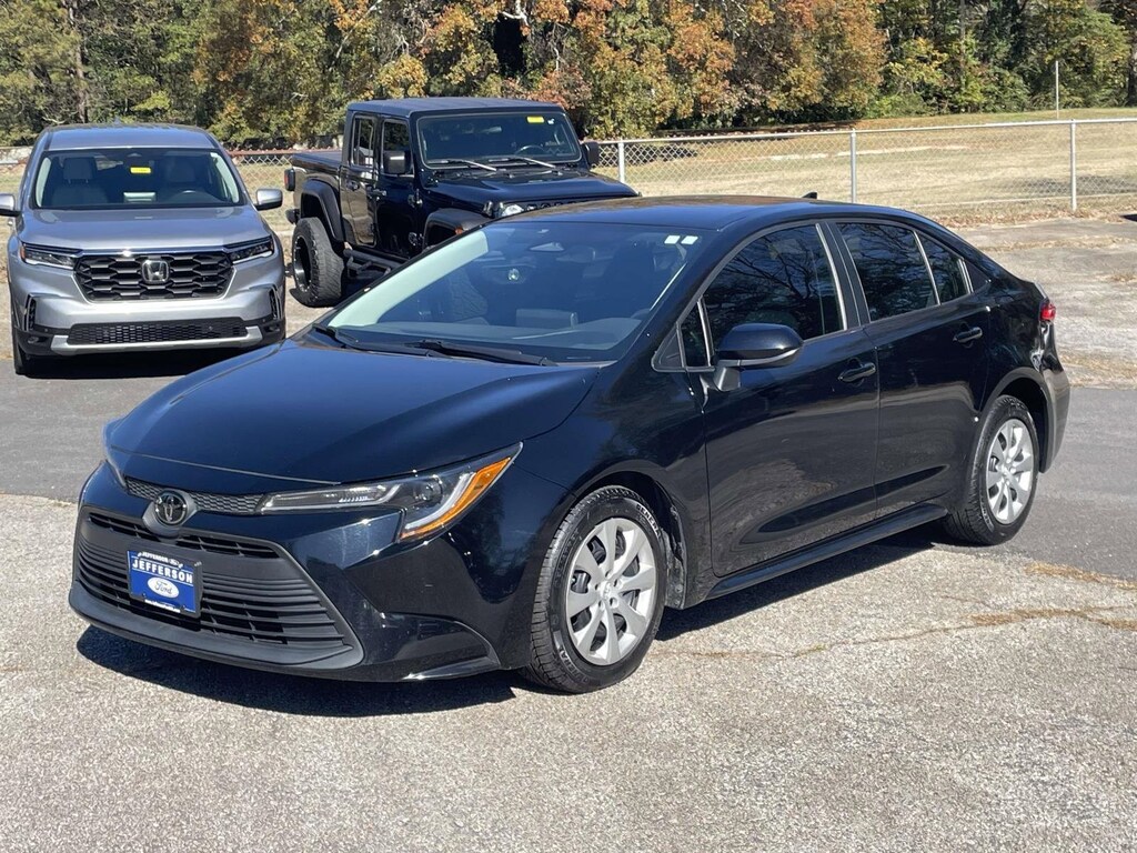 This 2024 Toyota Corolla LE in Midnight Black Metallic is equipped with CVT 2.0L I4 DOHC 16V 16" Steel Wheels w/Covers, 4-Wheel Disc Brakes, Air Conditioning, Auto High-beam Headlights, Automatic temperature control, Brake assist, Delay-off headlights, Dual front impact airbags, Dual front side impact airbags, Exterior Parking Camera Rear, Front Bucket Seats, Fully automatic headlights, Panic alarm, Power steering, Power windows, Radio: 8" Toyota Audio Multimedia, Rear side impact airbag.