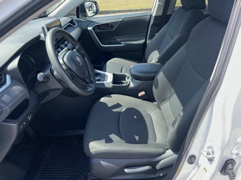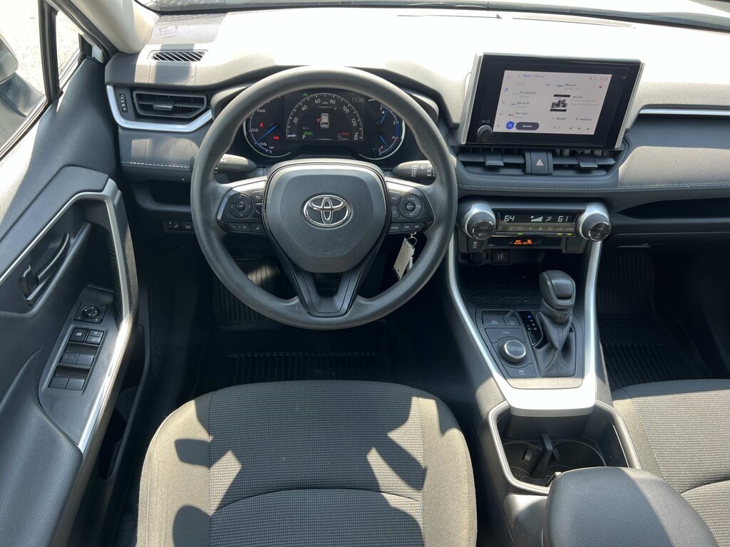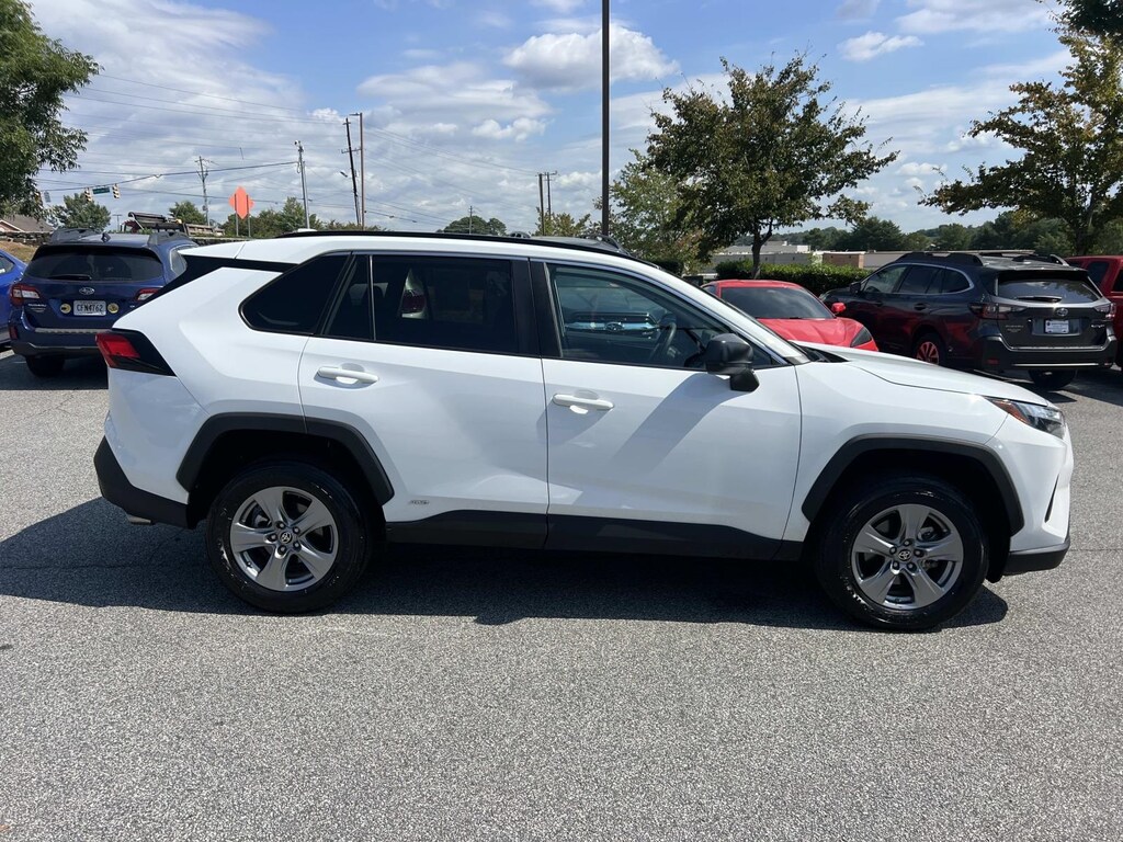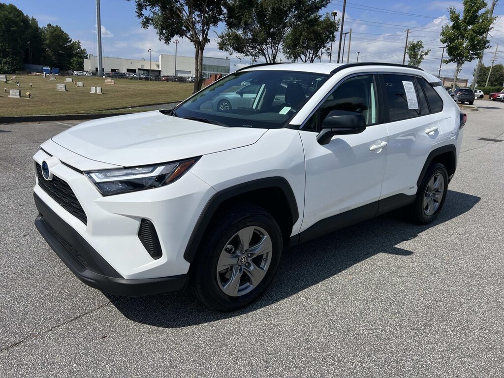 White 2024 Toyota RAV4 Hybrid LE AWD eCVT 2.5L 4-Cylinder New Feature, **Back up Camera, **Bluetooth, RAV4 Hybrid LE, 4D Sport Utility, 2.5L 4-Cylinder, eCVT, AWD, White, Black Cloth, 4-Wheel Disc Brakes, 6 Speakers, ABS brakes, Air Conditioning, Alloy wheels, AM/FM radio: SiriusXM, Auto High-beam Headlights, Automatic temperature control, Axle Ratio: TBD, Brake assist, Bumpers: body-color, Driver door bin, Driver vanity mirror, Dual front impact airbags, Dual front side impact airbags, Electronic Stability Control, Emergency communication system: Safety Connect (1-year trial), Exterior Parking Camera Rear, Fabric Seat Trim, Four wheel independent suspension, Front anti-roll bar, Front Bucket Seats, Front Center Armrest, Front dual zone A/C, Front reading lights, Illuminated entry, Knee airbag, Low tire pressure warning, Occupant sensing airbag, Outside temperature display, Overhead airbag, Overhead console, Panic alarm, Passenger door bin, Passenger vanity mirror, Power door mirrors, Power steering, Power windows, Radio data system, Radio: AM/FM/XM Audio System, Rear anti-roll bar, Rear seat center armrest, Rear window defroster, Rear window wiper, Remote keyless entry, Speed control, Speed-sensing steering, Split folding rear seat, Spoiler, Steering wheel mounted audio controls, Telescoping steering wheel, Tilt steering wheel, Traction control, Trip computer, Wheels: 17" x 7.0J Silver Aluminum Alloy.