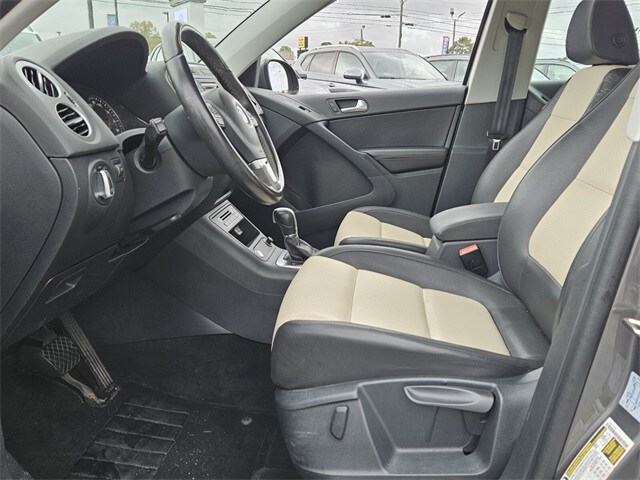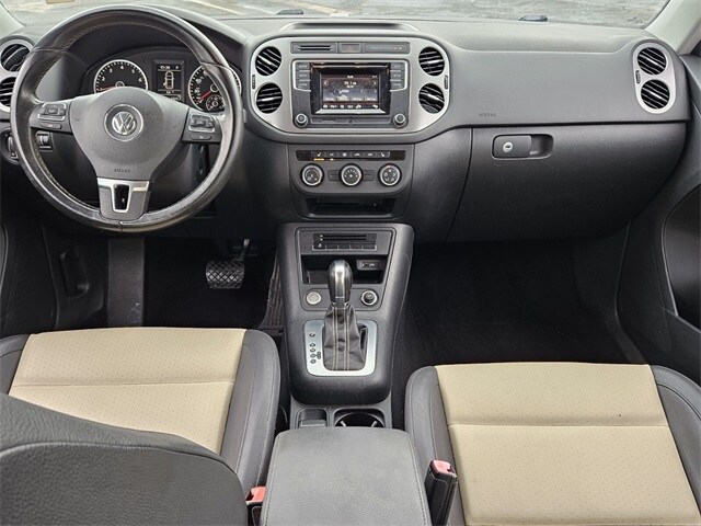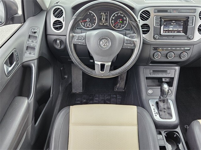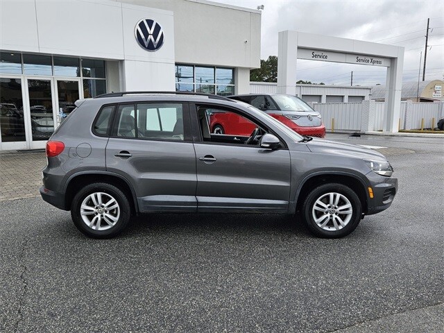 Panther Gray Metallic 2016 Volkswagen Tiguan S FWD 6-Speed Automatic with Tiptronic 2.0L 4-Cylinder Turbocharged This Tiguan is equipped with. 3.45 Axle Ratio, 4-Wheel Disc Brakes, 8 Speakers, ABS brakes, Air Conditioning, Alloy wheels, Auto-dimming Rear-View mirror, Brake assist, Bumpers: body-color, CD player, Compass, Driver door bin, Driver vanity mirror, Dual front impact airbags, Dual front side impact airbags, Electronic Stability Control, Exterior Parking Camera Rear, Four wheel independent suspension, Front anti-roll bar, Front Bucket Seats, Front Center Armrest w/Storage, Front reading lights, Fully automatic headlights, Heated door mirrors, Heated Front Bucket Seats, Heated front seats, Illuminated entry, Leather Shift Knob, Leather steering wheel, Low tire pressure warning, Occupant sensing airbag, Outside temperature display, Overhead airbag, Overhead console, Panic alarm, Passenger door bin, Passenger vanity mirror, Power door mirrors, Power driver seat, Power steering, Power windows, Radio data system, Rain sensing wipers, Rear anti-roll bar, Rear reading lights, Rear seat center armrest, Rear window defroster, Rear window wiper, Remote keyless entry, Roof rack: rails only, Security system, Speed control, Speed-sensing steering, Split folding rear seat, Spoiler, Steering wheel mounted audio controls, Tachometer, Telescoping steering wheel, Tilt steering wheel, Traction control, Trip computer, Turn signal indicator mirrors, V-Tex Leatherette Seating Surfaces, Variably intermittent wipers.