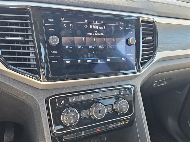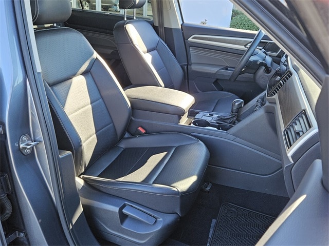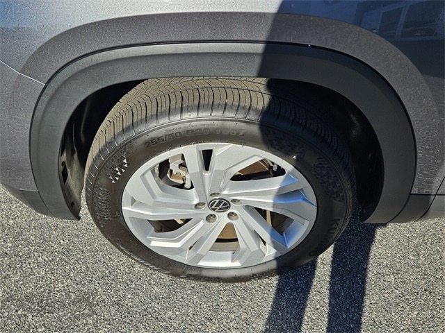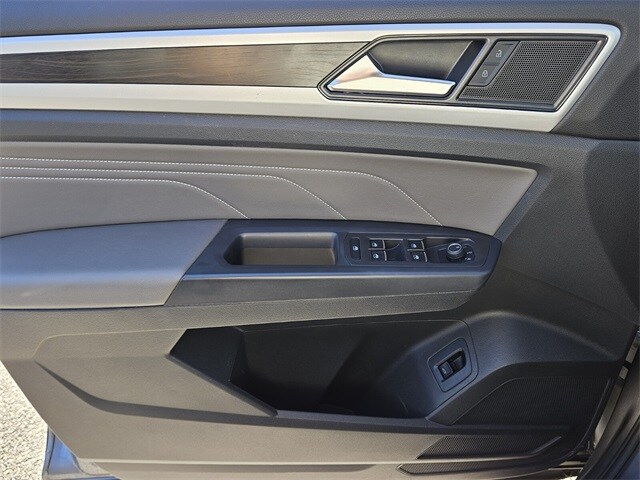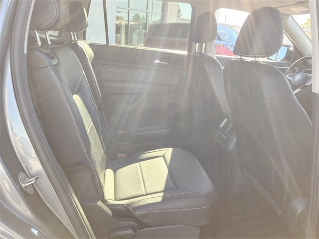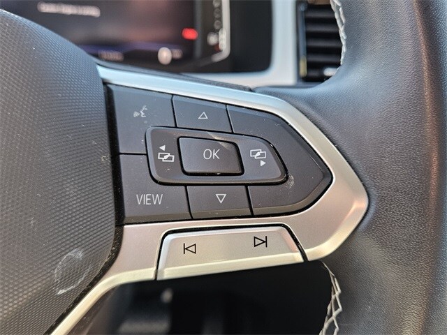 Gray 2022 Volkswagen Atlas 3.6L V6 SE w/Technology FWD 8-Speed Automatic with Tiptronic 3.6L VR6 This Atlas is equipped with. 3.60 Axle Ratio, 3rd row seats: split-bench, 4-Wheel Disc Brakes, 6 Speakers, ABS brakes, Air Conditioning, Alloy wheels, AM/FM radio: SiriusXM with 360L, Auto-dimming Rear-View mirror, Automatic temperature control, Brake assist, Bumpers: body-color, Compass, Delay-off headlights, Driver door bin, Driver vanity mirror, Dual front impact airbags, Dual front side impact airbags, Electronic Stability Control, Emergency communication system, Exterior Parking Camera Rear, Four wheel independent suspension, Front anti-roll bar, Front Bucket Seats, Front Center Armrest, Front dual zone A/C, Front fog lights, Front reading lights, Fully automatic headlights, Heated Comfort Front Bucket Seats, Heated door mirrors, Heated front seats, Illuminated entry, Leather Shift Knob, Low tire pressure warning, Occupant sensing airbag, Outside temperature display, Overhead airbag, Overhead console, Panic alarm, Passenger door bin, Passenger vanity mirror, Perforated V-Tex Leatherette Seating Surfaces, Power door mirrors, Power driver seat, Power Liftgate, Power steering, Power windows, Radio data system, Radio: MIB3 Composition Media w/8" Touchscreen, Rain sensing wipers, Rear air conditioning, Rear anti-roll bar, Rear reading lights, Rear seat center armrest, Rear window defroster, Rear window wiper, Remote keyless entry, Roof rack: rails only, Security system, Speed control, Speed-sensing steering, Split folding rear seat, Spoiler, Standard Suspension, Steering wheel mounted audio controls, Tachometer, Telescoping steering wheel, Tilt steering wheel, Traction control, Trip computer, Turn signal indicator mirrors, Variably intermittent wipers, Wheels: 20" x 8J 5-Spoke Silver Painted Alloy.